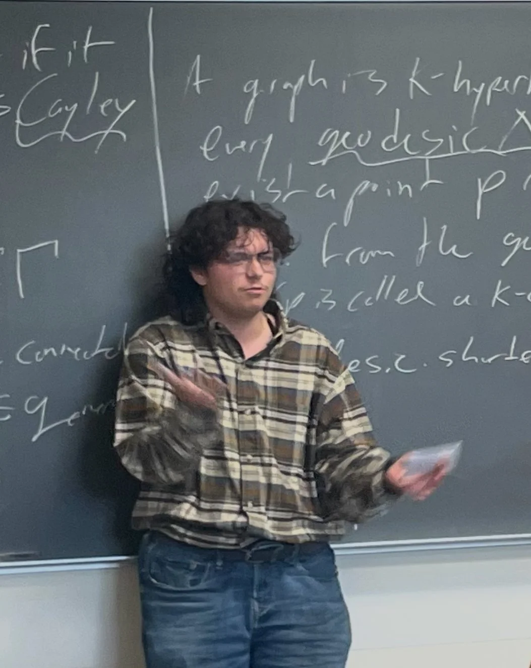 Hi, I’m Riley! I’ve been at MBTA since Fall 2023, and serve as the finance officer as well as greenhouse committee chair. I’m an undergraduate student double majoring in Mathematics and Afroamerican and African Studies. Currently my research is focused around the Fine Arc Graph and related graphs, and my Thesis work which is a history of Black mathematicians in America, looking for connections to African Epistemologies. I have a rabbit named Pebble, and I am a long-time fiber artist. Also I’ve got a buzz cut now, but haven’t got any nice photos yet.